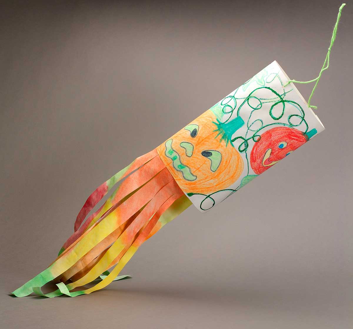 Make two small holes into the top of the windsock and thread string or yarn through the holes, leaving about a foot or two of hanging room. Hang the windsocks in an area where they are likely to catch a breeze so students can see how wind moves their art. If hung outdoors, remove them during times of rain or snow.