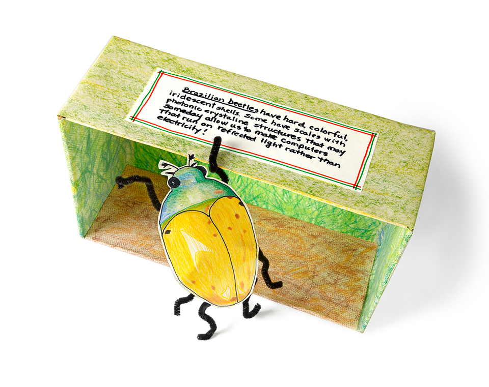 Ask students to write the name of the bug and some interesting facts about it to put on top of the diorama. Display the collection and and encourage students to discuss what they have learned.