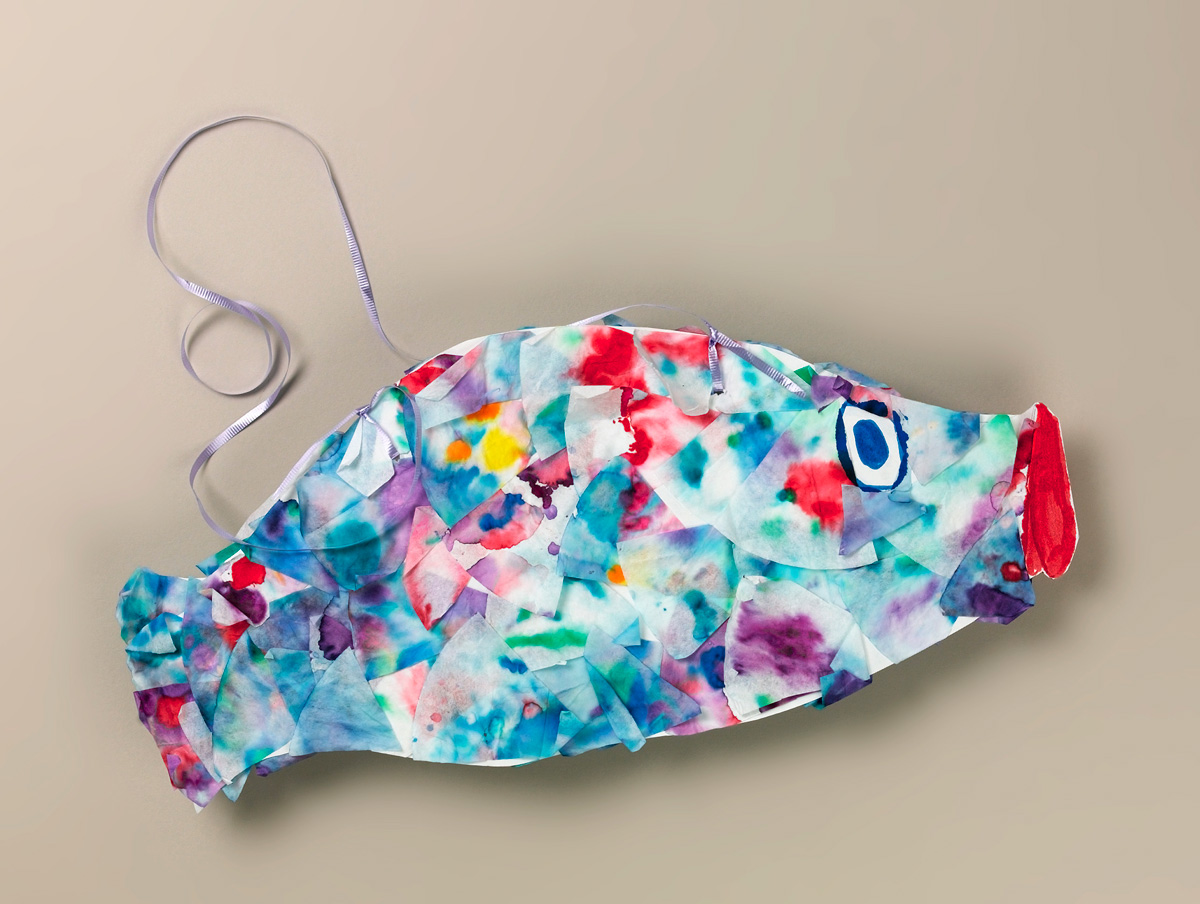 To make a carp streamer have students sketch a carp onto a piece of heavy paper and cut it out. Next ask them to color several coffee filters with markers, then lay them flat and spritz them with water. The colors will run and create a watercolor effect that can be cut or torn into fish scales. Have them glue the pieces of colored filter paper onto the carp cut-out.