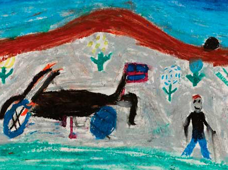 Ask students to remember some stories or important events in their life. Have them choose one and create a drawing in the style of Clementine Hunter, who used bold, bright colors in her art.