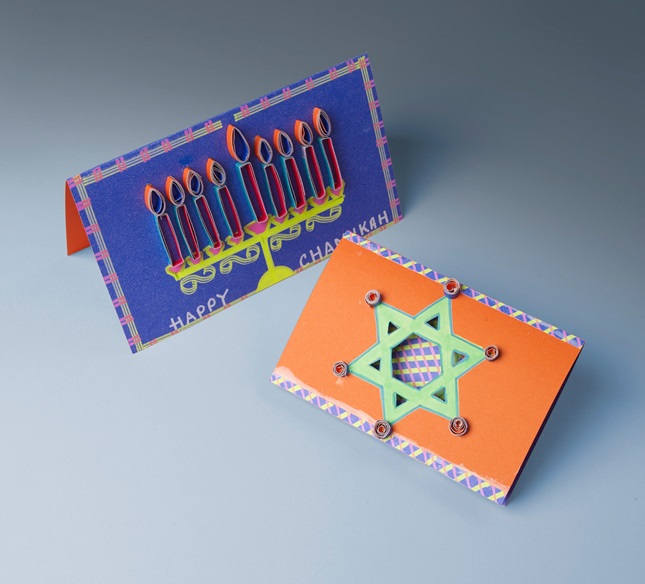 Create colorful and cheerful Chanukah cards using the quilling technique.