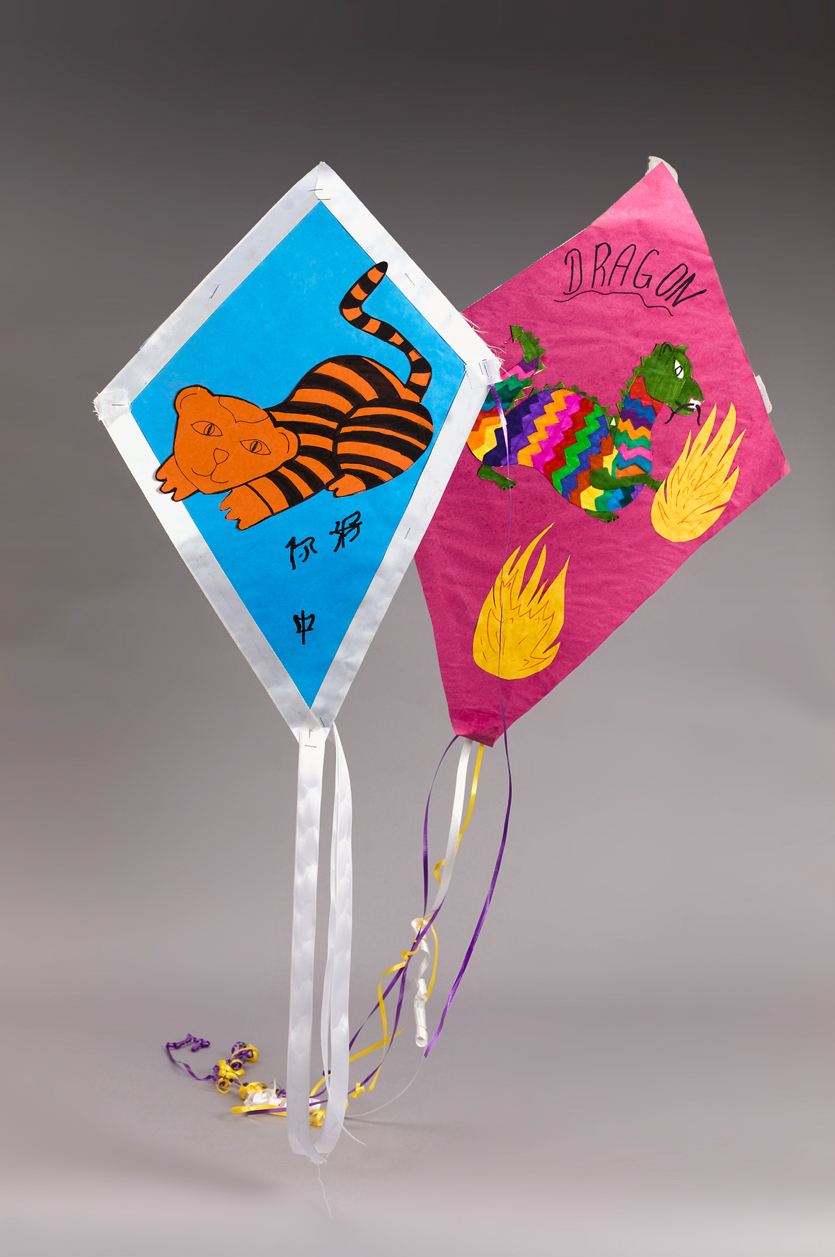 Have students design and create their own kite. They can cut a shape out of paper. This can be decorated with images associated with China, such as zodiac symbols or Chinese characters. They can draw directly on the kite or on separate paper, then cut out and glue or staple to the kite. They can finish the kite by adding strips of ribbon.