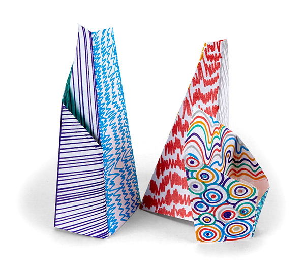 Create a striking sculpture by folding and refolding cardstock and decorating it with patterns and lines.