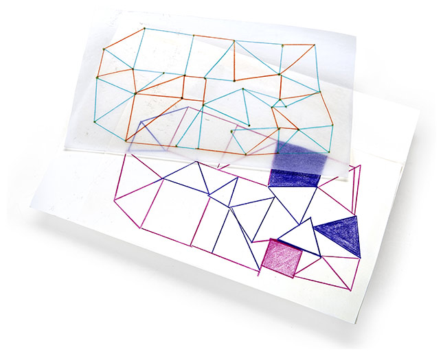 Have students use a ruler to draw a focal shape that has only straight edges. Ask them to fill that shape with smaller shapes, made of connected lines. Then have them cover the drawing with a piece of tracing paper and make dots on every point where lines intersect.