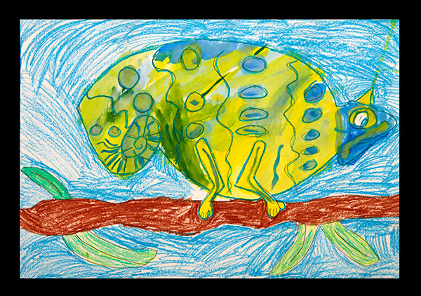 Have students draw a chameleon with crayons. They should create an outline first of the chameleon on the branch before coloring in and of the features. Have them embellish the drawing by going over it with watercolors.
