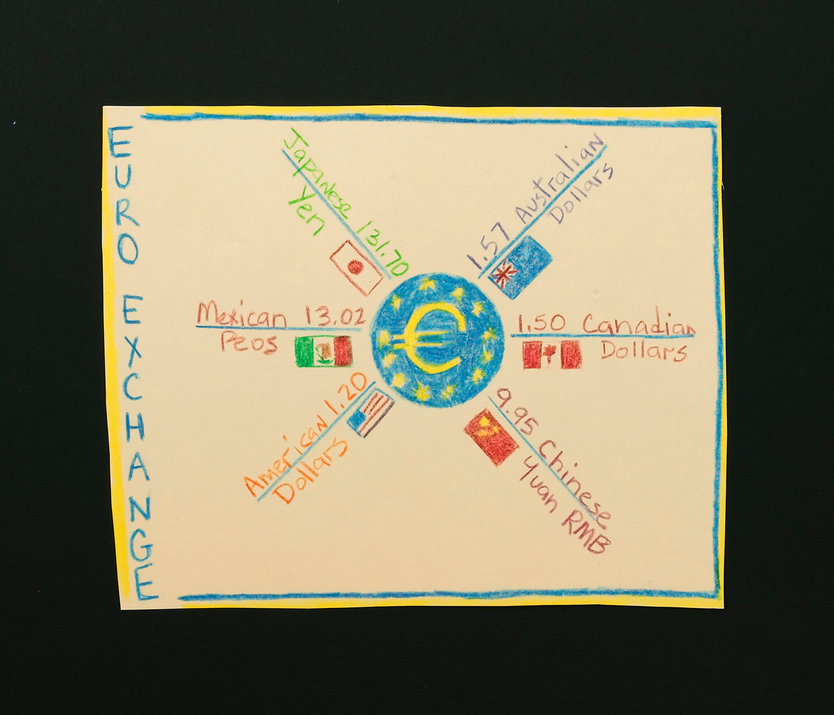 Have students choose several non-EU countries to research. Ask them to find out each country's unit of currency and its exchange rate with the euro. Then have them create a chart listing the country, the name of its currency, and its value against the euro. They might also add embellishments such as a drawing of the national flag or other items associated with the country. If they use erasable colored pencils they can update the chart periodically as rates change.