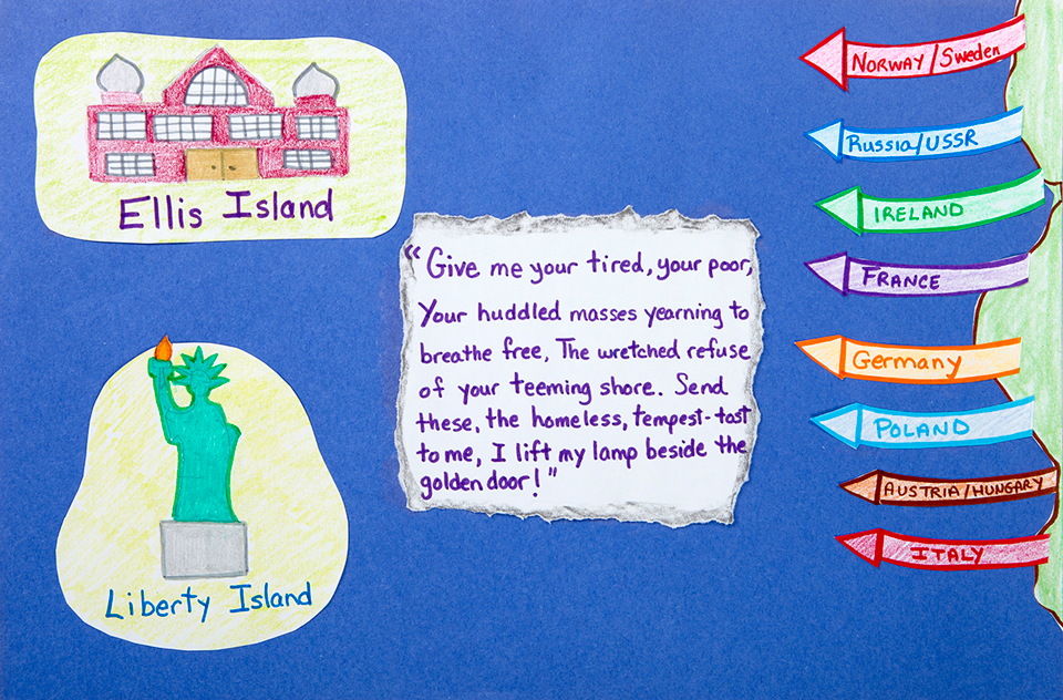 Have students depict some of what they learned on an informational poster. They might include images of the processing center, the Statue of Liberty which is located there, and other facts pertinent to the site.