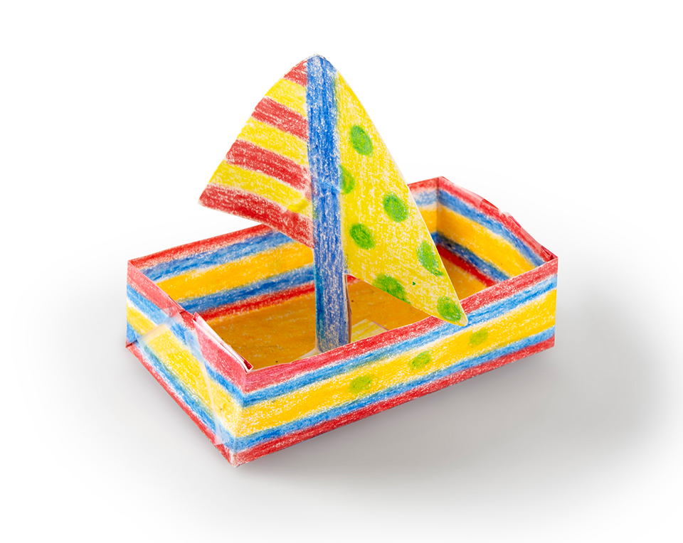 They will also need one plain uncolored paper boat for the experiment to compare to the wax-coated boat when they are placed in water. Ask a student who has finished early to fold and tape one and undecorated boat that is constructed in a similar way to the wax-coated ones.