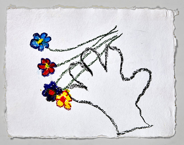 Ask students to create a drawing in the style of Picasso's "Bouquet of Flowers." They can start by using a crayon to trace their hand on paper. Or students can trace the hand of another classmate. Have them decorate the drawing with flowers, trying to make it appear as if the hand is holding the flowers.