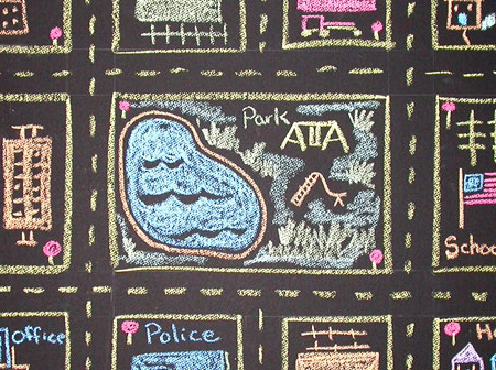 Divide the class into small groups and have each pick an area to represent. Ask them to first sketch their section on paper. Encourage them to include the buildings, parks, roads, and other features in their area.