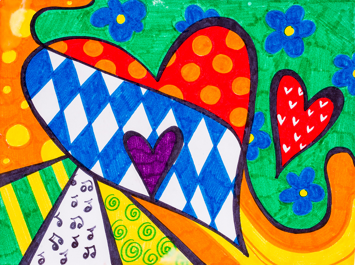 Ask students to create a colorful and happy work in the style of Britto. Encourage them to use bold and vibrant colors and iconic shapes and patterns, as Britto does in his art.