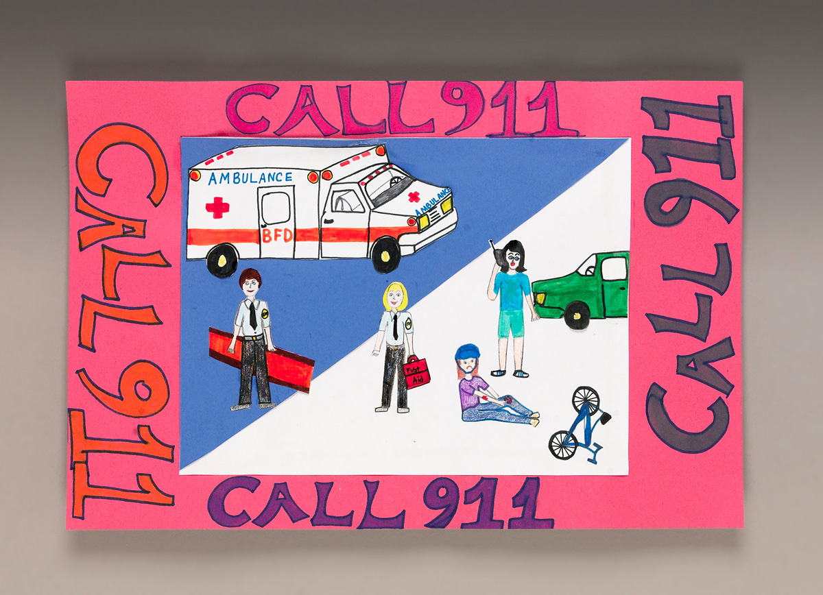 Discuss the people in the community who help keep us safe and healthy. Ask students to list some of these professionals and volunteers such as EMTs, nurses, paramedics, doctors, firefighters, and others. Make sure the class knows the 9-1-1 emergency number. What are some of the responsibilities of these emergency personnel?