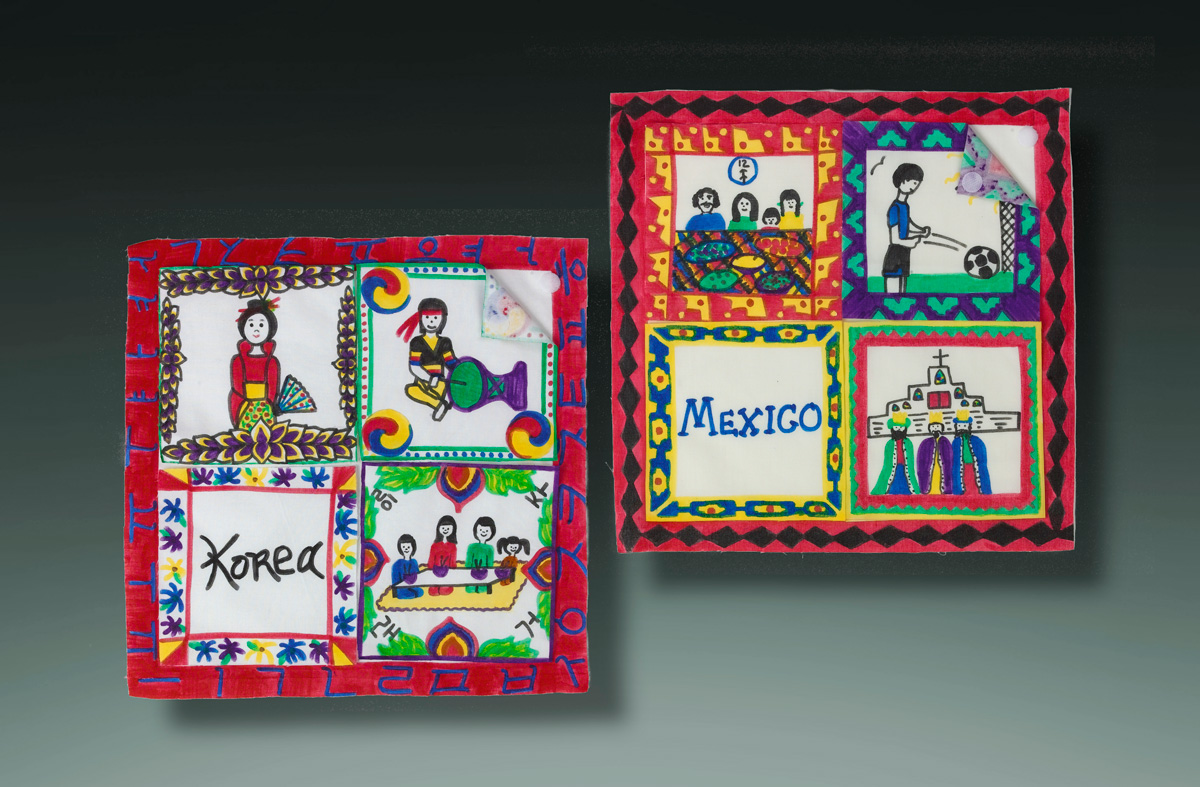 Ask students to choose a nationality or culture to explore further. Then ask them to create a quilt square that features images associated with it. They can cut four squares out of paper and illustrate each one, then arrange and glue them onto a larger square of heavy paper or poster board and decorate the border.