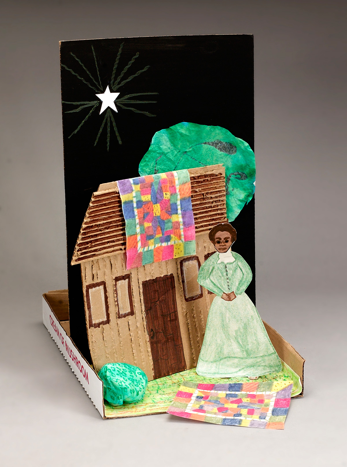 Ask students to create a 3-D scene depicting Harriet Tubman and some items pertaining to her life and work. They can use a recycled box as the base and use paper and recycled cardboard to cut out figures for the scene which can be decorated with colored pencils, crayons, paint, and craft items such as fabric scraps. A background can be formed using heavy paper.