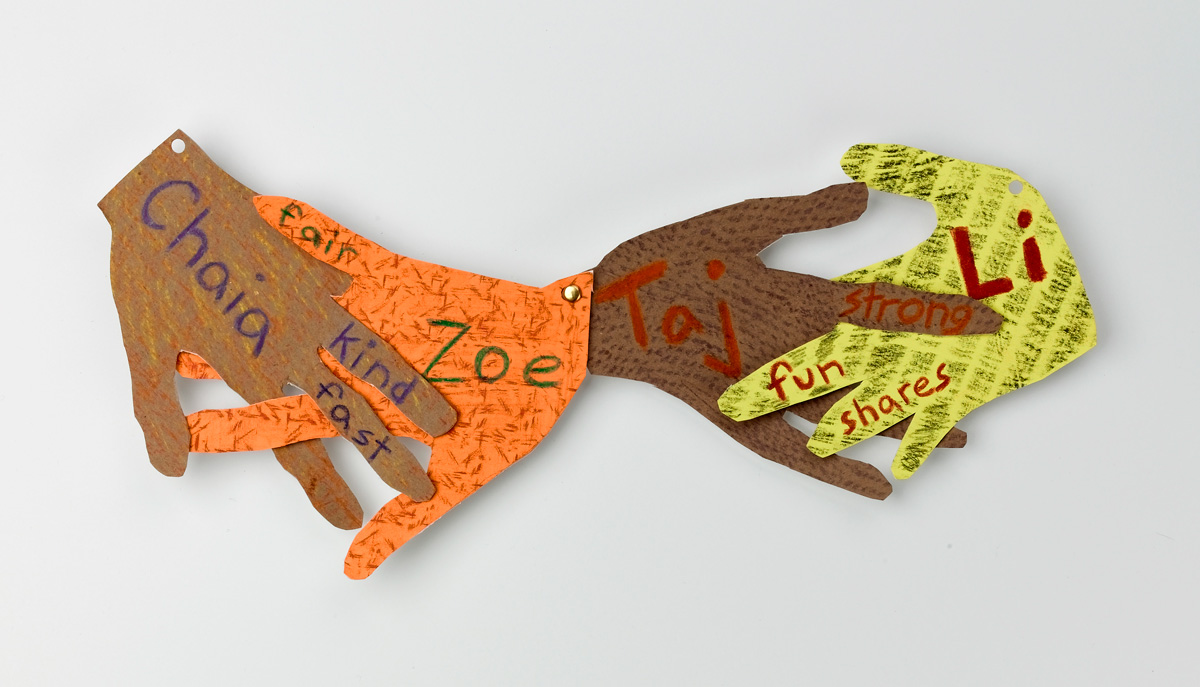When all the hands are complete, join them with fasteners and display the linked hands to show how we're all connected and have something positive to offer.