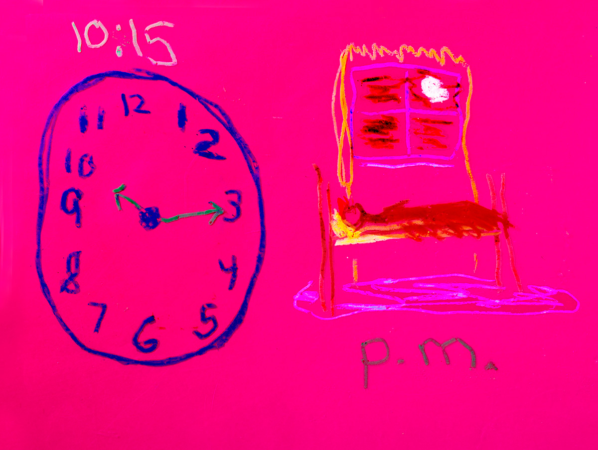 Ask children to present their drawings, and ask the class to read the time on the clock and describe the pictured activity.
