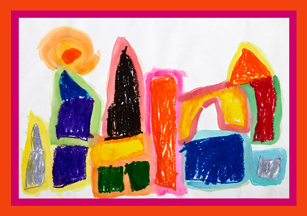 Have children use watercolors to paint various shapes to create a castle. When the paint is dry ask them to color in the shapes with crayons.