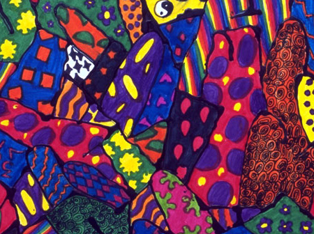 Have students use markers to create a colorful and vibrant patterned work of art. Encourage them to use bold colors and patterns that may have special meaning to them.