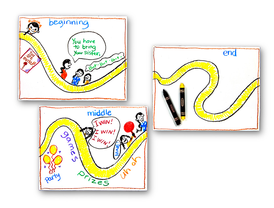 Encourage children to write an original story and then depict it in a story map using illustrations and a few words.