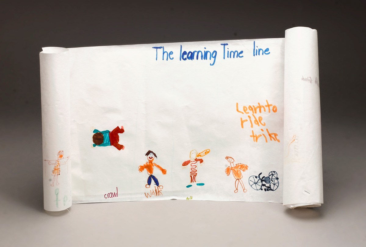 Provide children with a section of a paper roll. Ask them to illustrate some of their milestones and accomplishments and label them, as they are able.