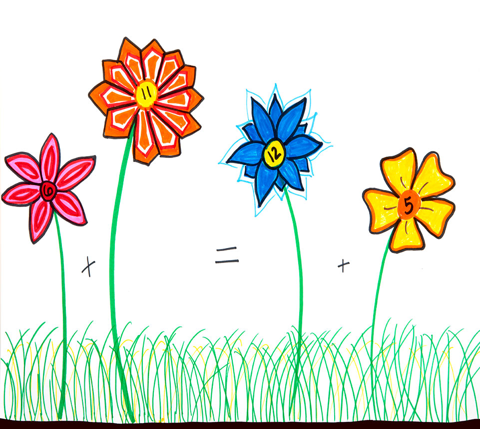 Ask students to write a balanced math statement and draw flowers to whose petals match it. For example, if their equation is 8 + 4 = 6 + 6, then one flower would have eight petals and the other would have four on the left side of the equal sign, and the flowers to the right of the equal sign would each have six. Students could embellish their art with features such as grass or a sun if they wish.