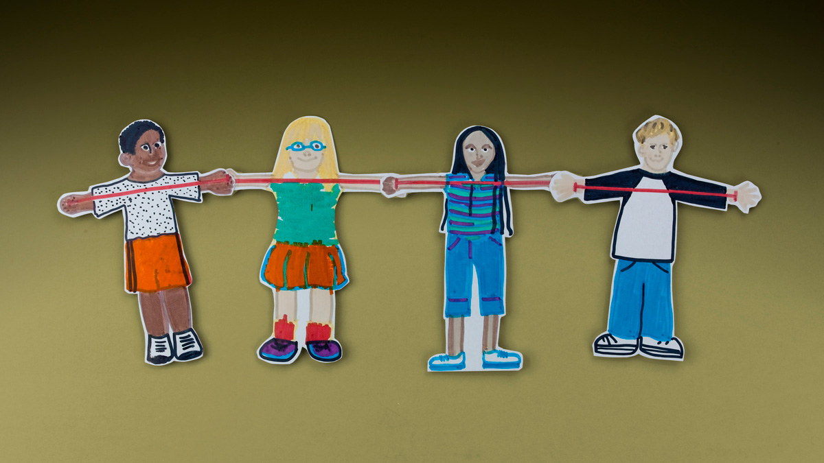 Have students create paper dolls to represent themselves making sure each student uses a similar size. They can decorate their figures with Colors of the World Markers and classic color markers then cut them out. Then have them connect all the figures with tape. You could also link each one additionally by putting a hole in the hands and threading a string through each one.