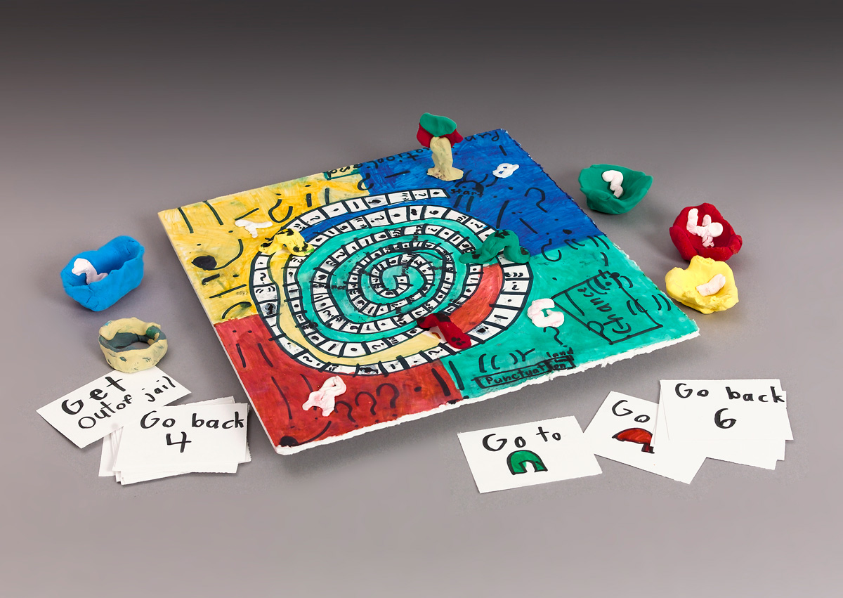 After the teams develop their game concepts they should sketch designs for the game board. They can create the board from a piece of heavy cardboard or recycled foam core. They will transfer their sketch ideas onto the board, first with erasable colored pencils and then finalized with markers. Game pieces could be formed from Model Magic or small craft items. They can use heavy paper to cut and write their game cards. Encourage them to be creative when they use the resources!