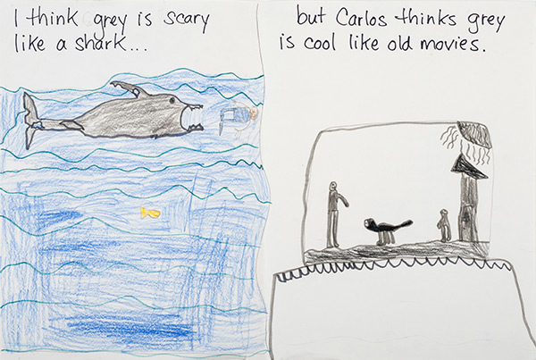 Have students choose a color that could represent opposite or different emotions. Ask them to write a sentence and draw one interpretation of it on one side and another sentence and drawing of a different interpretation on the other side.