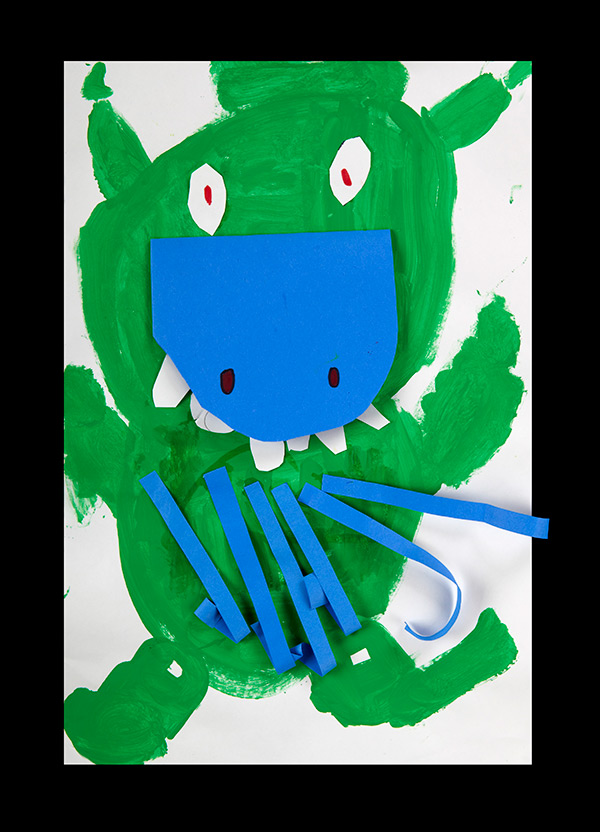 Have children design a hungry monster and think of the features it would need depending on what it likes to eat. Would it have pointy or flat teeth or both? Would it need a long neck to reach leaves in the trees? Ask them to paint it on paper and then cut or rip strips of paper to make the teeth and any other embellishing features they'd like to include. When the paint is dry they can glue the teeth and other features to the picture.