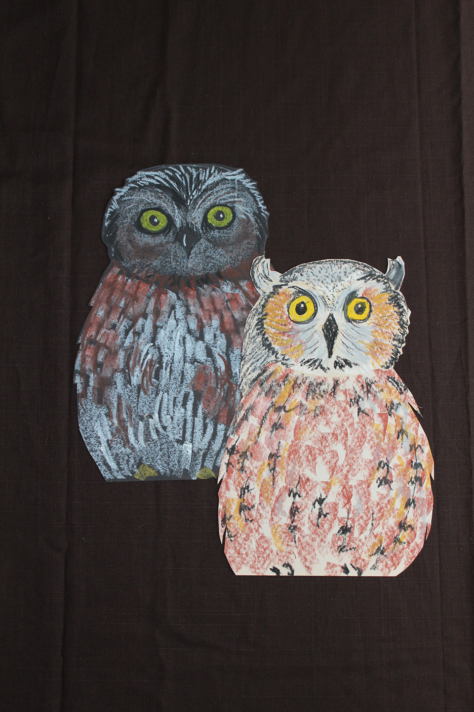 Have students look at images of different types of owls. Ask them to then draw an owl on a piece of light or dark construction paper using oil pastels. They can research and reference images as a guide for the colors and features. When they're done they can cut out their owls and glue them to black or dark construction paper to create a nighttime setting.