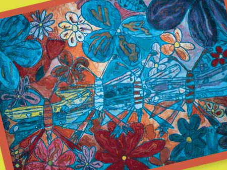 Display the students' artwork on a bulletin board that features colorful flowers and their pollinators.