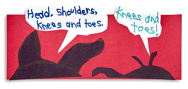 Have students glue their character silhouette shapes and speech bubbles to a piece of construction paper. Display the artwork near the original book that was read aloud.