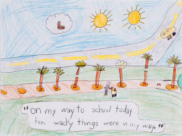 Have students draw a silly or wacky picture. It might be inspired by the book the class read or an original idea they have. Then ask them to write a sentence or two or a silly poem about it on the drawing. Then ask them to present their art and writing to the class.
