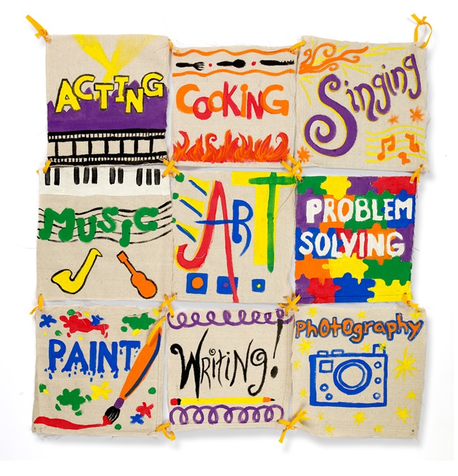 Ask each group to write and illustrate one of the words or phrases from their list on a square piece of paper. When the groups are finished, join the squares, either by gluing them to a large poster board or by punching holes in the corners and tying them with ribbon or string.