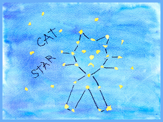 While the paint is drying, have students cut "stars" out of a yellow piece of construction paper. When the paint is dry, ask students to scatter their stars across their night sky. Do they seem to suggest a form or picture? If they like where they have landed, they can glue them into place. Then have them define the image by drawing connecting lines with a marker.