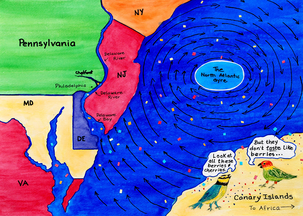 How does a plastic bottle discarded in North America end up on a beach in Africa? Make a map tracing the path of a piece of trash through the world's waterways.