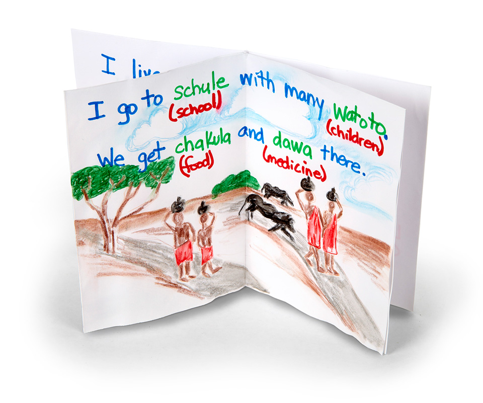 Have students create an illustrated mini book using some of the words they researched. Ask students to write sentences with both the English and Swahili words and to illustrate their writing.