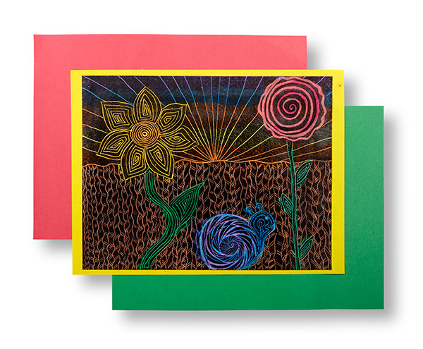 Art and math combine in this activity where students explore patterns and nature and create a spiral design using a sgraffito technique.