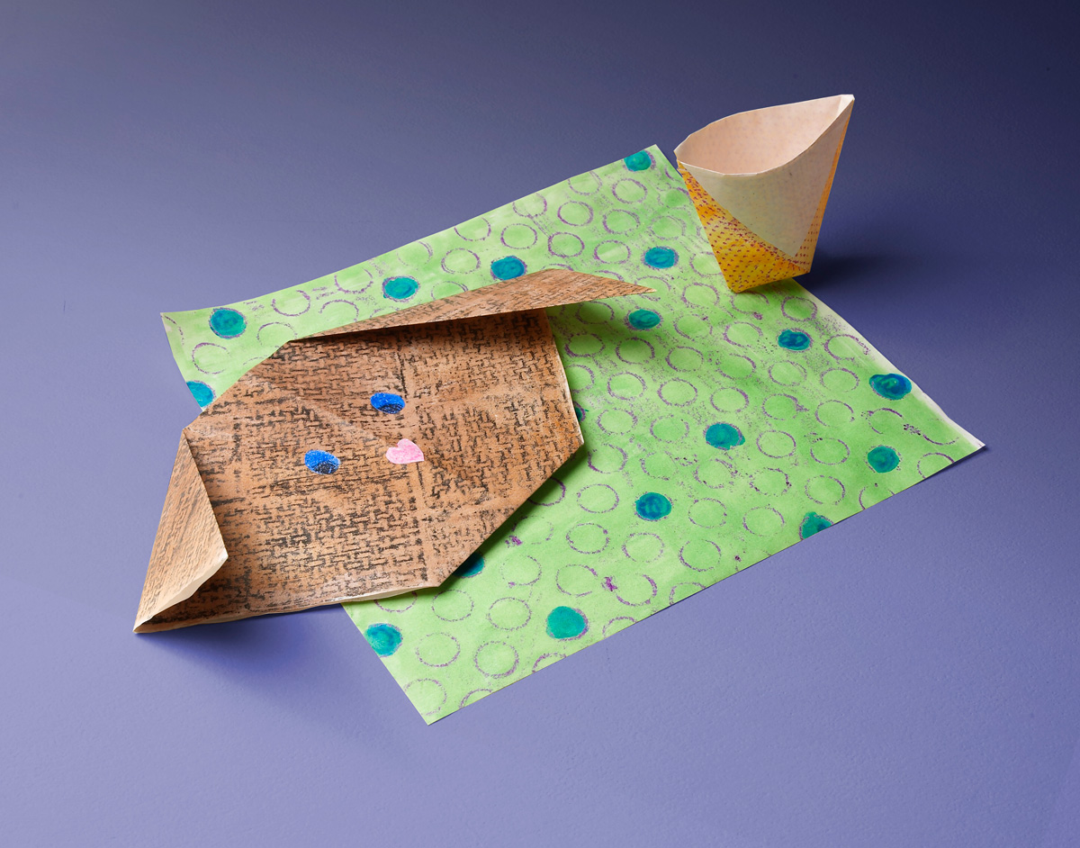 When their paper is decorated, ask students to cut them into six-inch squares, which will be folded to form their origami creations. There are many online videos that show how to make simple creations. Have students choose a simple design to begin with, and when they are ready to progress, they can find a video that explains how to create a design that has special meaning to them.