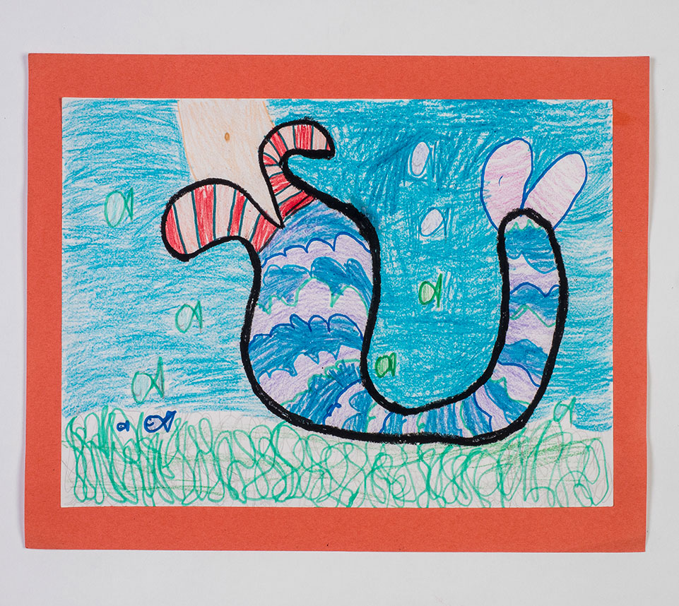 Have student pairs present their work and discuss their process. Did the originator have an idea in mind when the base shape was drawn? Did the child who interpreted it see any other possibilities? How did the art evolve as the activity progressed? How did the original sketch look different when the art was complete? Solicit feedback from other children about other designs they see or stories that emerge from the image.