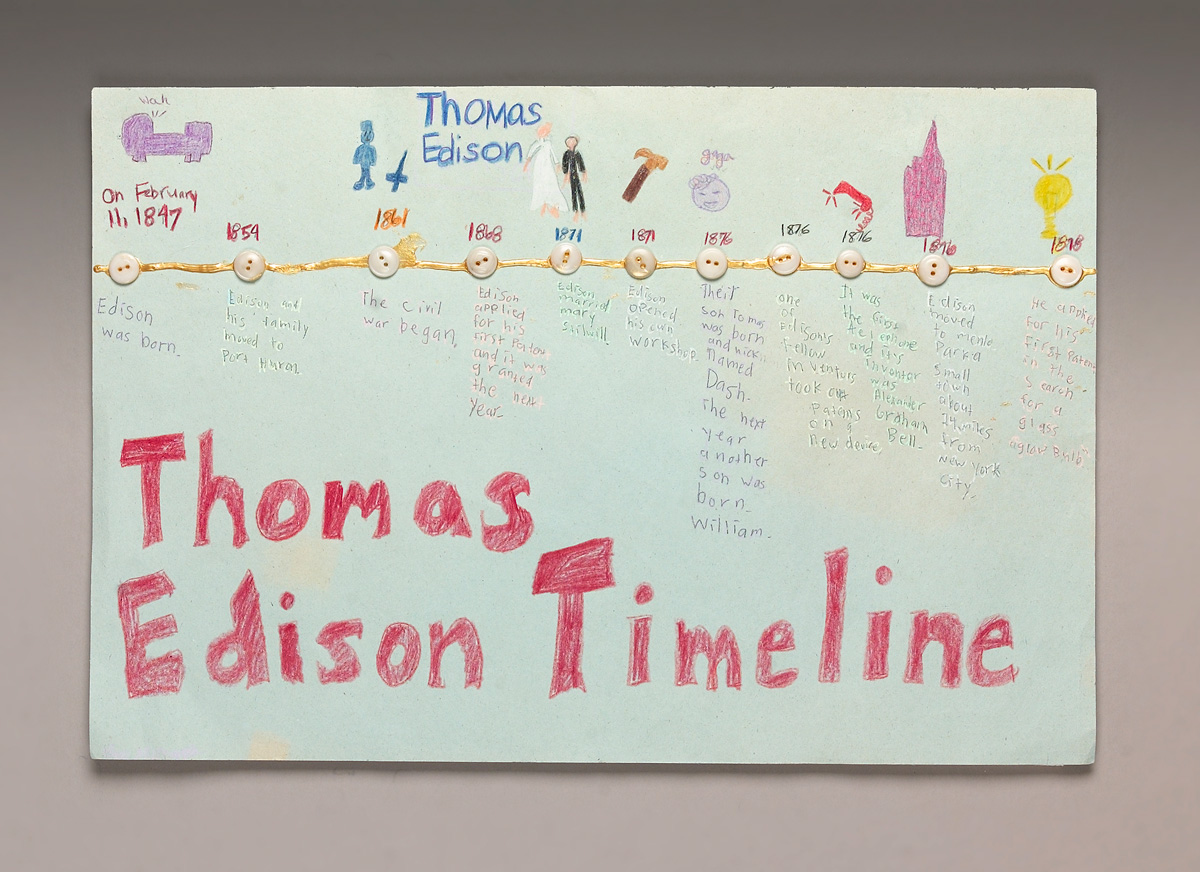 Ask students to create a timeline depicting noted events in Thomas Edison's life. Have them describe and illustrate some of the inventions. They can embellish the timeline with craft items such as string and beads or small buttons.