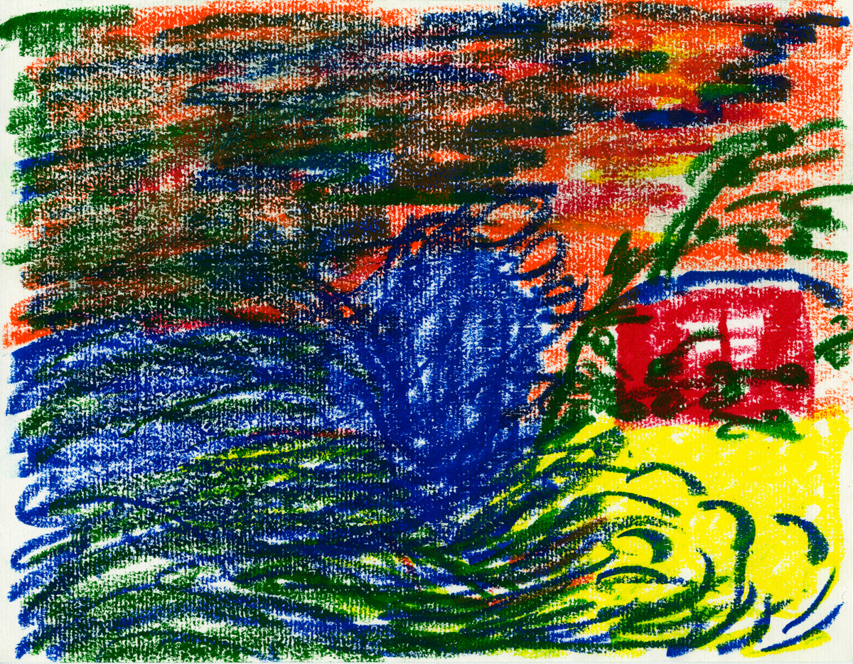 Students can apply thick layers of oil pastel onto heavy paper that has a canvas-like appearance. They can direct their strokes to look tumultuous and lively to represent the water spout and objects moving with the wind. Oil pastels blend nicely with a fingertip or tissue if students want to blend some of the colors while while keeping other strokes distinct.