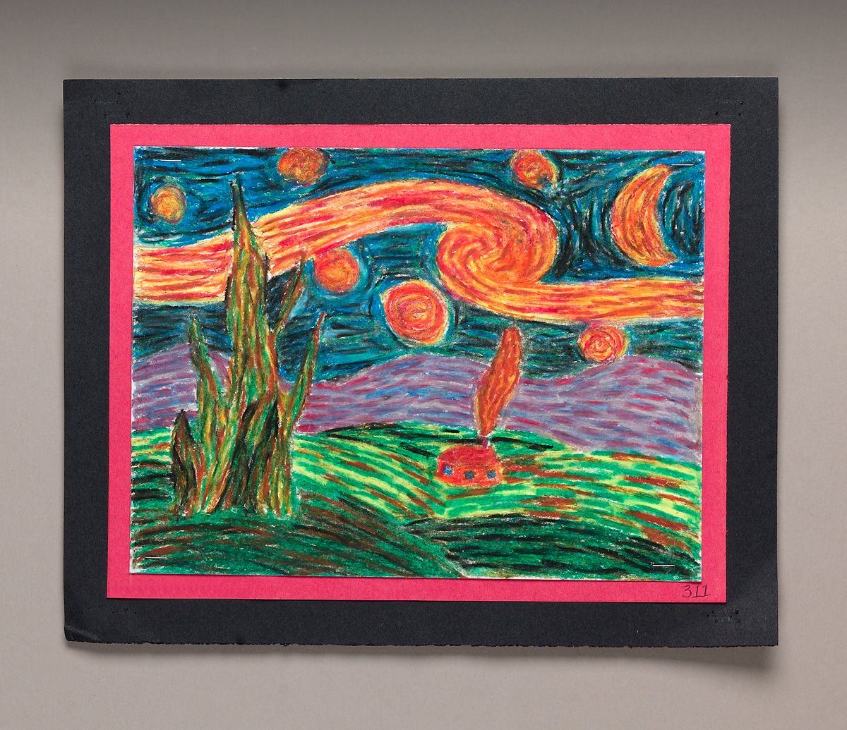 Have students think of an outdoor scene they'd like to depict. It might be a nighttime scene as in The Starry Night and use shades of blue and gold; it could be an autumn daytime scene that uses yellow, red, and orange; or it might be a summer scene with shades of green. Ask them to try to convey the illusion of movement by using different brush strokes and swirls of color.