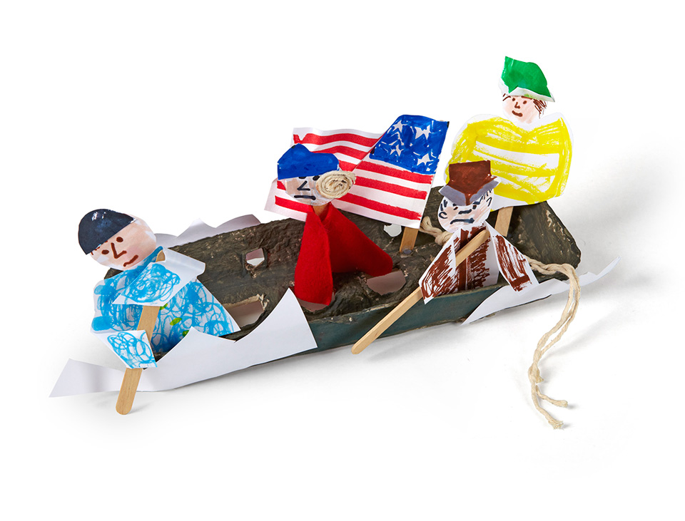 Have a small group of students work together create a replica of the Durham boat using a recycled box. They can use markers to color the interior and exterior, draw the characters, and if they choose to replicate the painting, add a flag (but this time make one that is historically accurate). Each team could construct a character to represent Washington and members of his troops using craft sticks, paper, and other craft items. They might look at images of the uniforms worn by Washington's soldiers to inspire them. One student could assemble the pieces as they are completed by teammates. They can cut a small slit in the bottom of the "boat" and then place each character's craft stick through the hole, adding a small amount of glue on the craft stick base.