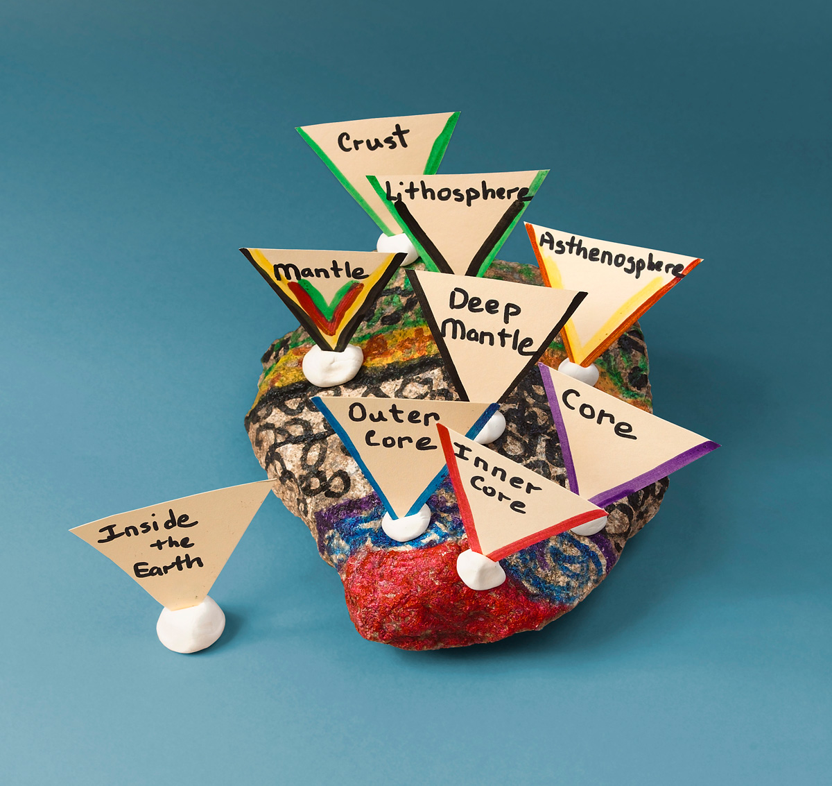 Take the class outside on a nice day. Ask each student to find a flat rock that could be drawn on to show the layers of the Earth. When they're back in the classroom have them use markers to draw the layers of the Earth on the rocks. Then ask them to create and cut out labels for the layers. They can use small pieces of Model Magic to hold the labels upright and affix them to the appropriate place on the rock.