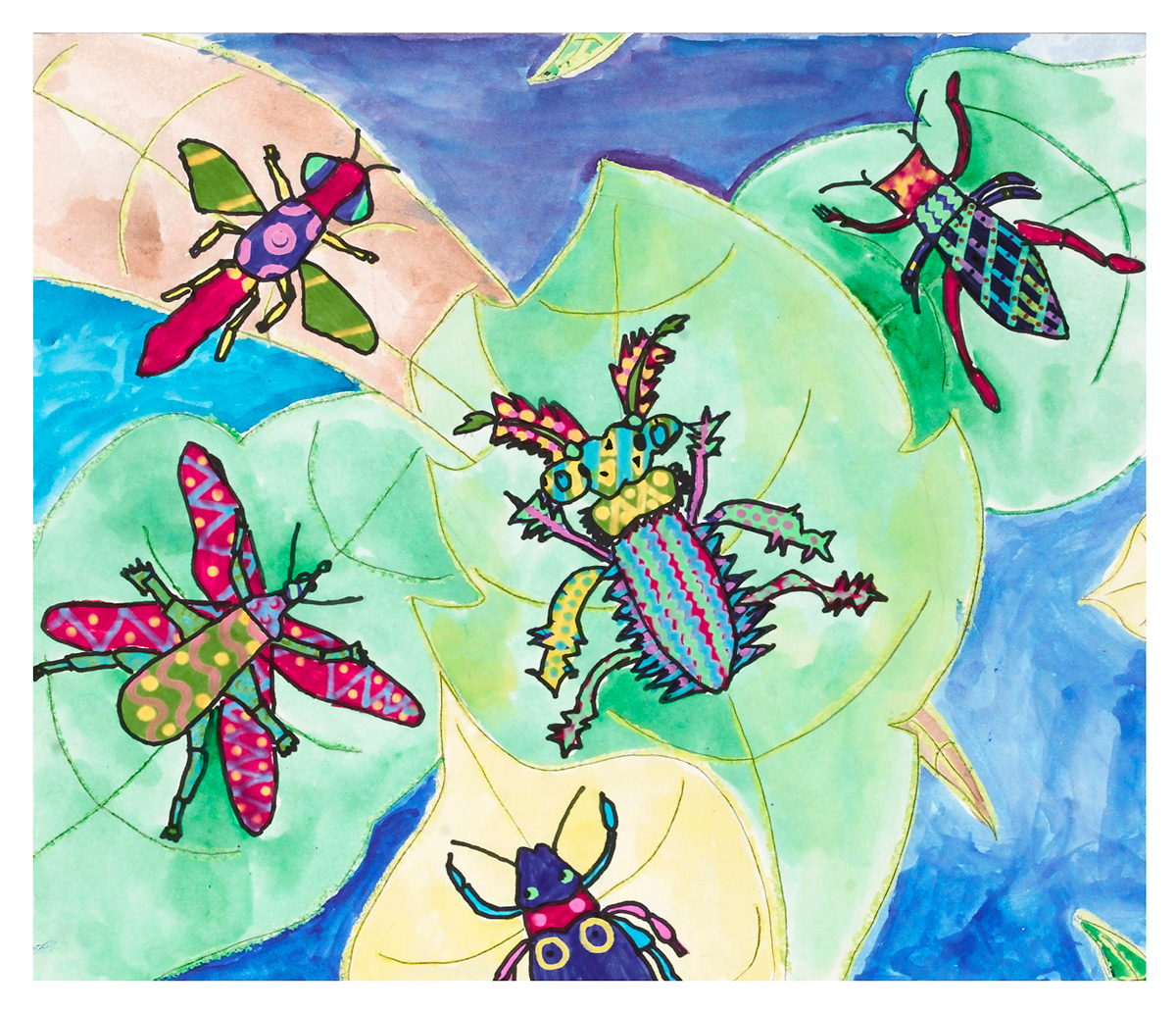 Ask students to look at images of some insects and use the images as inspiration as they depict them in a drawing. They could make the drawing realistic or fanciful, adding colors and markings not found on the insect.