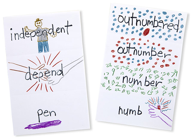 Now have students find progressively shorter words within their chosen words. If they chose "cabinetmaking," for example, they might write "cabinet," "cabin," and "king." Ask them to illustrate the original word and its smaller words.