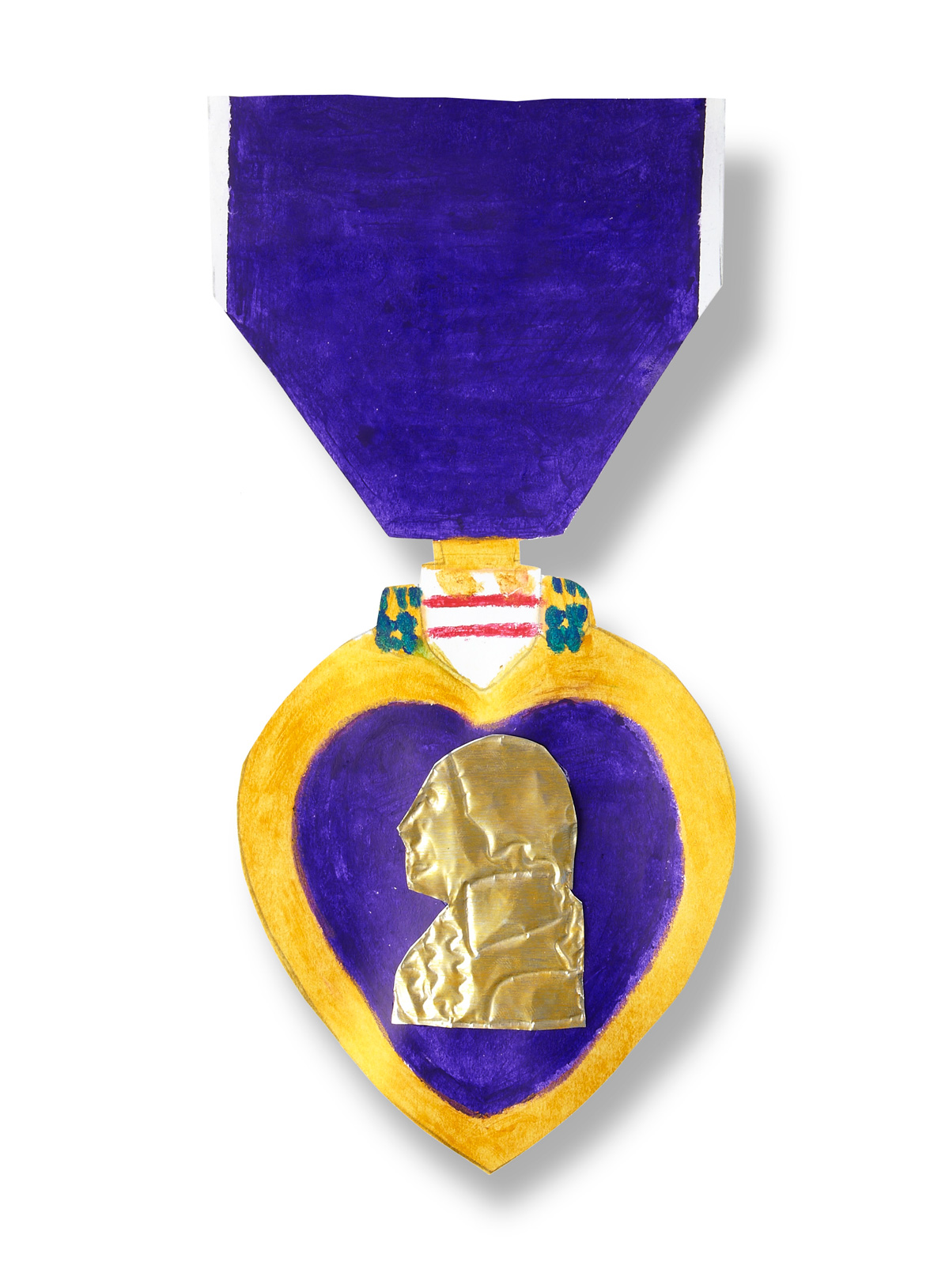 Have students look at images of a Purple Heart medal, then have them create a replica of one. They can make the silhouette of George Washington on a piece of gold-toned paper or create the paper with Crayola gold tempera. Next they will cut out the image and glue it on a heart-shaped cut-out from a piece of heavy paper that has the center colored with purple marker and the outer edge with gold.