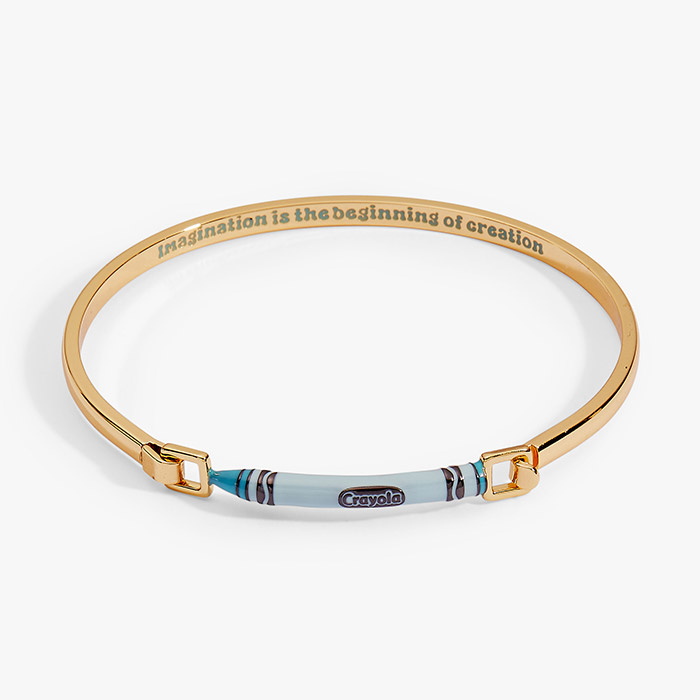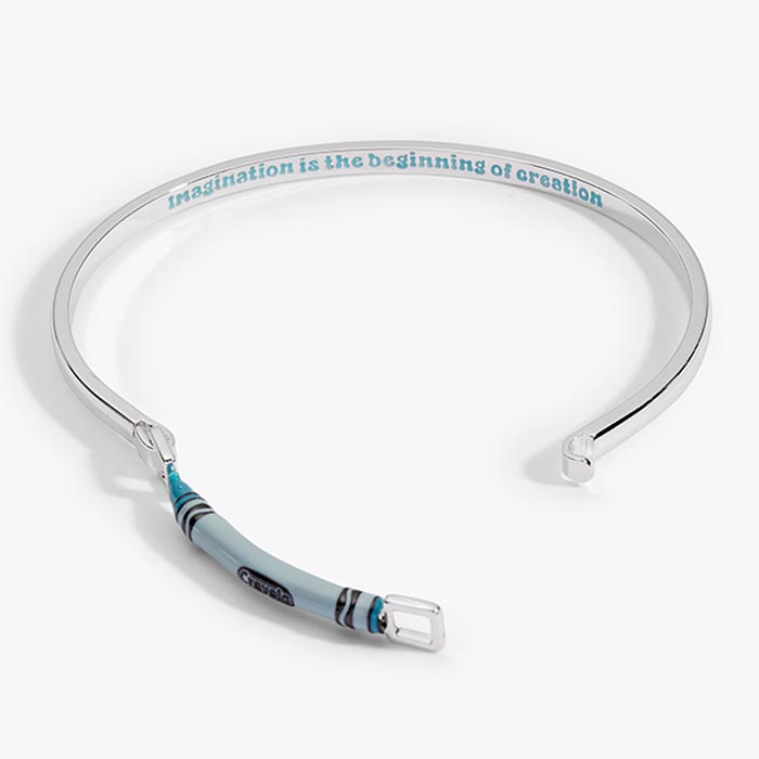 • Celebrate the educators who inspire young minds with this playful enamel blue crayon-shaped tension bangle. Designed to honor teachers, this piece features an etched message inside: "imagination is the beginning of creation"—a reminder of the creative spark teachers ignite every day. The iconic crayon silhouette pairs nostalgia with meaningful sentiment, making it a perfect token of appreciation for the teachers who shape our world.